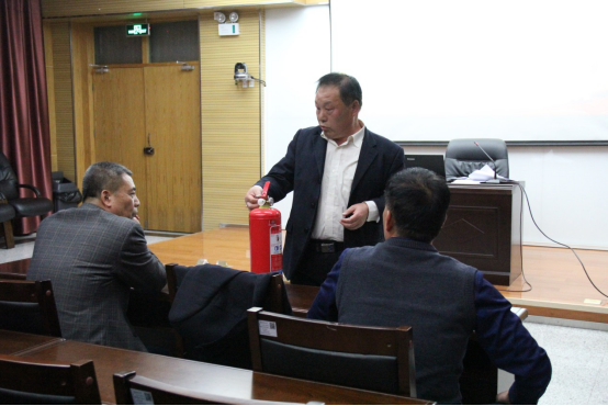 最后,田处长还向员工们讲解了消防安全知识及其重要性,并现场演示了灭火器的使用方法。田老师的报告赢得了同学们的热烈掌声。