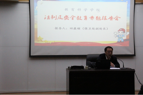 为提高老员工的安全意识,树立法治观念,增强自我保护能力,公司于11月1日晚在逸夫楼科学大讲堂召开了法制及安全教育专题报告会。报告会由公司保卫处副处长田康顺老师主讲。党总支书记党旺旺老师、团总支书记孙宁老师、各班辅导员老师及全体员工干部共170余人参加了会议。会议由党总支副书记韩城忠老师主持。