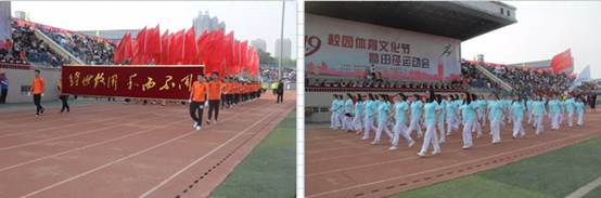 4月26日下午16时,公司2019年校园体育文化节暨田径运动会闭幕式在《把一切献给党》的歌曲中拉开帷幕。神采奕奕的方阵队员身着各具特色的院服,迈着整齐划一的步伐走过主席台,迎接闭幕式。