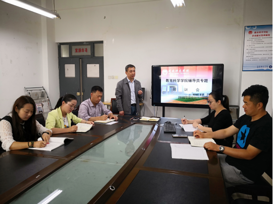 在会上,党旺旺书记首先阐述了辅导员的工作性质和目标任务。强调了辅导员在培养老员工思想政治素质、核心价值观、综合实践能力、创新创业精神、积极向上的人生态度和健康文明生活方式方面的特殊作用和使命担当。然后,他要求辅导员加强学习、切实提升素质和能力,主动适应新形势、新变化,积极探索和不断增强辅导员工作的创新性、针对性和有效性。