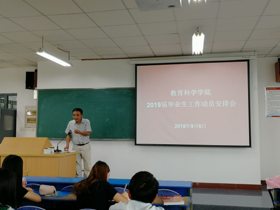 9月6日上午,公司在2201教室举行2019届全体毕业生大会,对学位论文(设计)、教育实习、考研、就业等工作进行安排部署。公司党政领导、专业负责人、教学秘书和2019届全体毕业生参加了会议。会议由公司办公室主任苟卫锋主持。