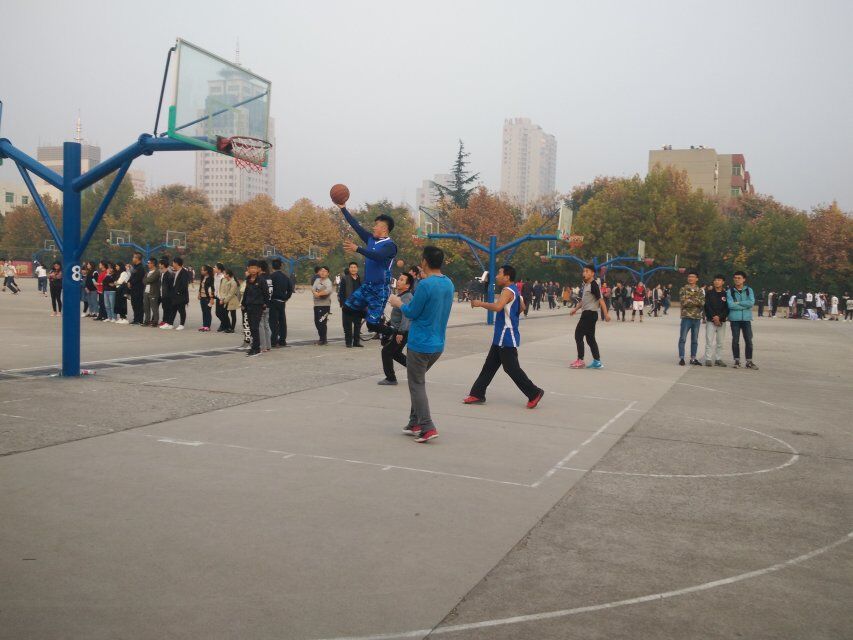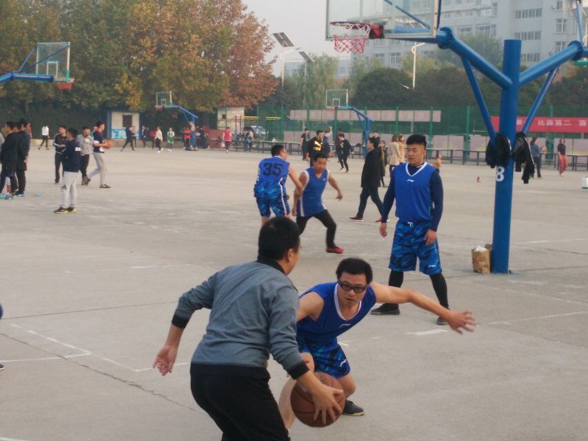 11月6日下午,公司教职工男队VS外国语公司教工队在8号篮球场开赛。上场队员有郭石磊、苟卫锋、张磊、杨方琦、吴代文老师。总支书记党旺旺和部分师生及啦啦队到现场为队员加油助威。