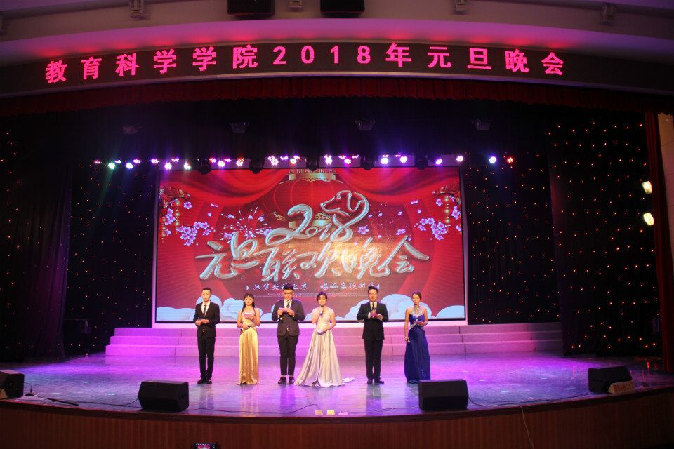晚会分为上半场“品古韵之魂,传华夏之魄”与下半场“思想的碰撞,21世纪新的时代”。首先由员工会表演的交际舞拉开了元旦晚会的帷幕。接下来是由大一新生严艺唯等同学带来的小品《大话西游》。小品演绎了唐生师徒四人西天取经发生的趣事,令同学们笑声不断。然后由王静、郝艺唯等带来的古典舞《大鱼》,李颖等带来的歌曲《你曾是少年》再一次让现场沸腾。上半场结束,激动人心的抽奖活动令现场气氛达到最高潮。下半场开场由白芈等带来的舞蹈《Wow war tonight》使全场沸腾。紧接着王国庆的《魔术》令现场观众大呼神奇,小品《总监驾到之青春校园》爆笑上演,舞蹈《Sexy honey》、Hip-hop《教科有嘻哈》、舞蹈《没有明天》等节目先后上场。最令同学们惊喜的是由员工会带来的歌曲《Shape of you》,我们的歌手在观众席中开场,这使得在场同学尖叫声连连,作为压轴好戏出场的则是爵士舞《As if it is your last BABY》精彩的表演令全场欢呼声不断,最后在六位主持人的祝福声中完美落幕。