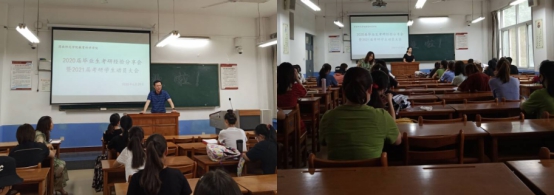 6月29日上午,公司在知新楼2216教室,利用腾讯会议,同步开展线上线下2020届毕业生考研经验分享会暨2021届考研员工动员会。经理李西彩、党总支副书记何泰伯、副经理马雅菊、各专业负责人、2020届考研录取员工代表长孙思语等7人,及2017级、2018级、2019级考研员工参会,会议由副经理马雅菊主持。