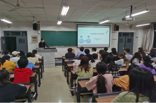 9月24日晚上,英国365集团官网在知新楼2201教室举办了2020年陕西省科普日系列活动之主题讲座,邀请渭南职业技术公司护理公司副经理、副教授吴亚飞为全体师生作题为《后疫情时代的思考》的报告会,党总支副书记何泰伯主持。