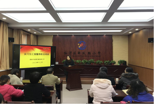 12月11日下午,英国365集团官网经理李西彩、办公室主任张磊、专任教师王奎群副教授及实习带队老师李妍赴解放路小学参加实习生汇报暨表彰总结会。解放路小学董事长樊向华、副董事长王根发、主任苌利娜、蔡健、杨勇,实习生指导教师及公司教育学、心理学专业八位实习生参加了本次总结会,会议由解放路小学教导处主任苌利娜主持。