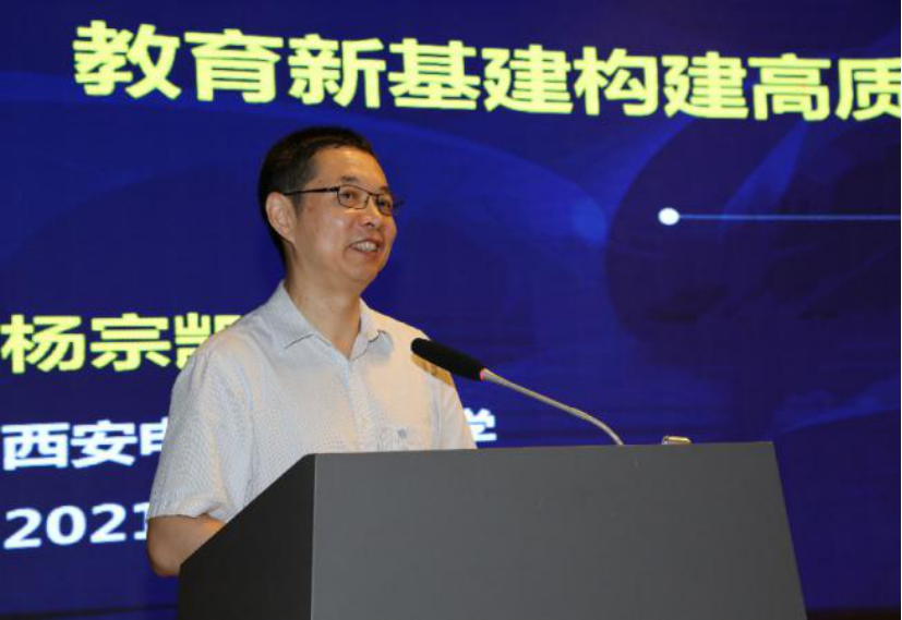 开班仪式后,杨宗凯教授以《教育新基建构建高质量教育支撑体系——以西安电子科技大学为例》为题做了首场专题报告,他强调,教育信息化是一项复杂的系统性工程,教育思想观念要从以教为主向以学为主转变;要明确课堂重在培养员工协作、沟通、思辨、创新能力的定位;搭建智慧物理空间与在线学习空间的双空间相结合的教室教学环境;重塑教育评价,关注员工增值性能力评价与学业评价。