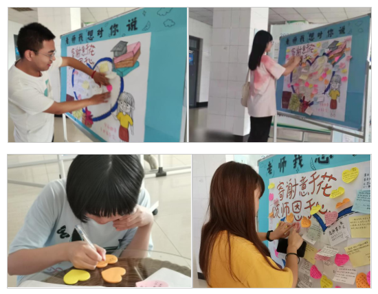绘制展板感师恩。活动最后,同学们制作展板,并纷纷在便利贴上写上对老师的感谢话语,向老师表达深情的问候和祝福!