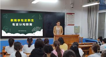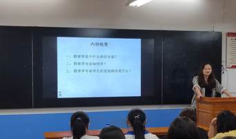 梁燕玲老师首先对教育学全体新生的到来表示欢迎,她现场调查了“同学们为什么选择教育学”“教育学是你的第一志愿吗”等几个问题,通过了解员工对专业的初步认识,进一步向同学们介绍了学习教育学的意义,鼓励同学们树立教育情怀,积极投身于教育实践。