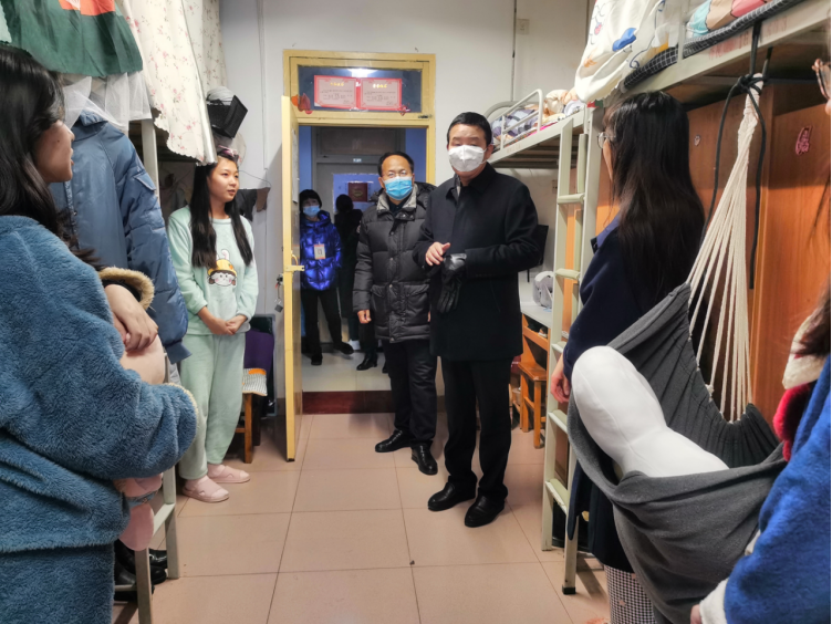 肖耀刚深入员工宿舍,首先带去公司对大家新年的祝福,肖耀刚强调,疫情防控就是命令,在全公司党政的领导下,公司切实加强组织领导,汇聚强大合力,确保员工核酸检测、餐饮安全、后勤保障、校园消杀、物资供应、师生防护、员工工作、教学工作、校内管控全布局,构筑“领导小组+包联指导+专项工作组+应急专班”的校园疫情防控机制,全力保障师生身体健康和校园安全稳定,同时肖耀刚提醒大家积极、严格遵守疫情防控规定,做好自我防护。