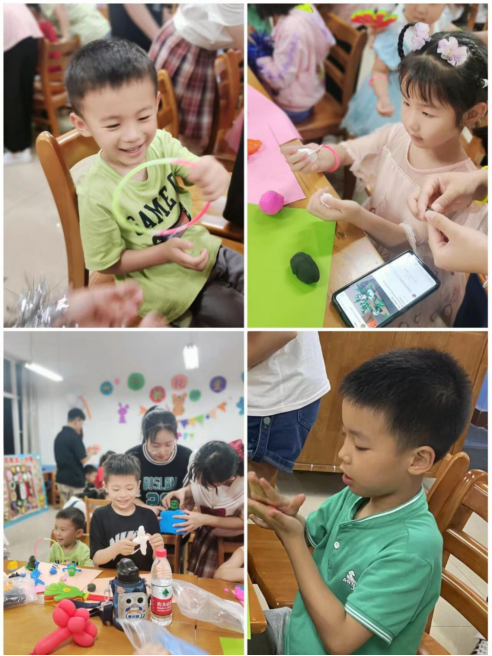 主题活动在充满童趣、欢快的韵律操活动中拉开序幕。随后,幼儿们在专业员工的引领下,分别参加了“十二生肖泡泡屋”、“欢乐时光游戏堡”、“巧手绘画创意坊”三个区域活动。