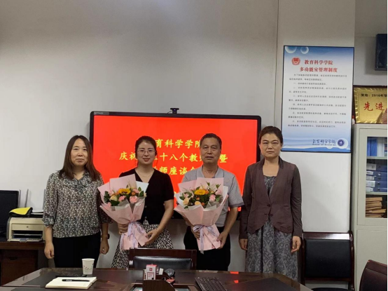 会议伊始,梁燕玲和李西彩分别给两位老师送上双节问候并赠送了鲜花和中秋月饼,预祝他们双节快乐。随后,梁崇科教授回顾了自己30多年的从教经历,他说:“1985年是新中国成立后的第一个教师节,也是他参加工作的第一个教师节,今年是自己职业生涯过的最后一个教师节”,自己已经历38个教师节,也亲眼目睹了公司38年的发展历程,目前发展已经超越了自己的预期,今后希望公司公司以后发展的更好。最后,结合内涵式发展,他建议进一步加强员工综合素质培养,全面提升师范生培养质量;凝聚团队力量,采取横向联合同类院校团队或者高水平大学团队,促进教学科研项目成功率。青年博士教师郝丹娜基于教学和项目申报建议公司建立精良教学科研团队,有了团队支撑、有侧重点引导,各个个去击破,有利于提升整体水平,另外,她提出员工学术素养应提前培养,开设相关方面的课程,借鉴同类院校成功做法,有利于促进员工科学研究能力提升。