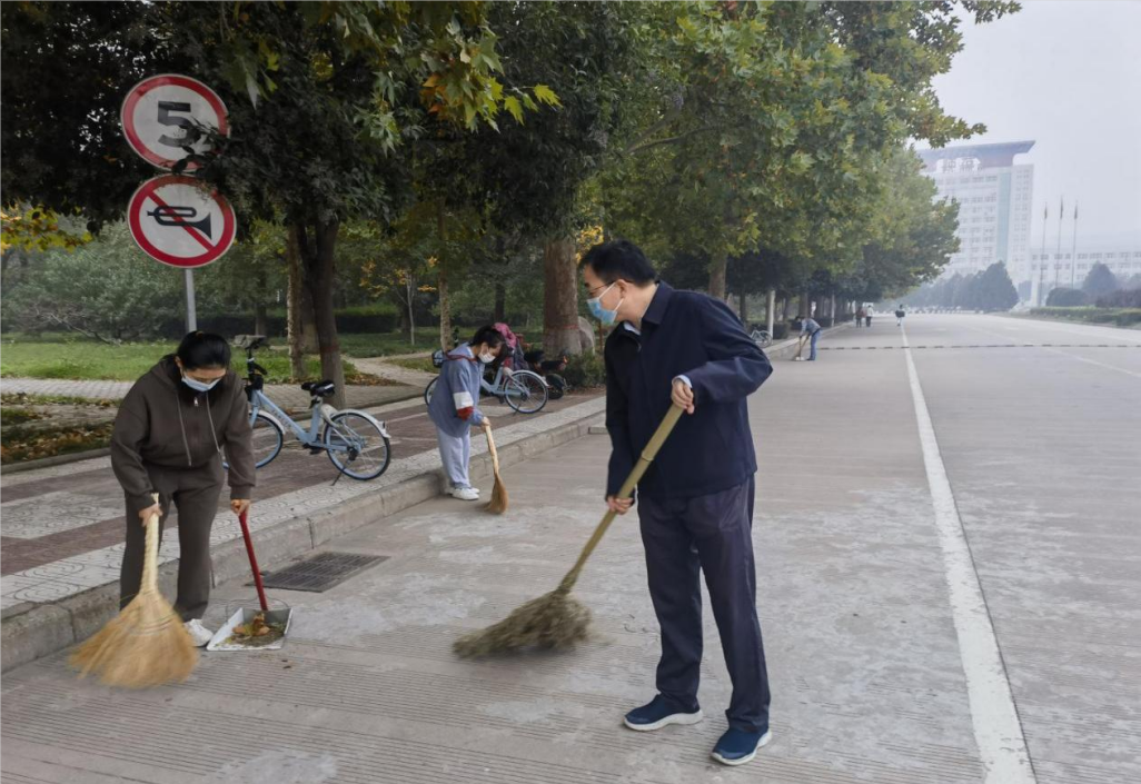 秋日暖阳照耀在每个人的脸上,伴随着欢声笑语和辛勤汗水,道路上的落叶和垃圾、绿化带中的碎石和杂物被逐渐清理干净,这是新时代师生劳动教育的一次生动实践。张守华强调,劳动教育要在实践过程中积极摸索,逐步完善实施方案,通过“党建引领、师生参与”协同机制,多方形成合力,不断深化劳动育人工作内涵,推动劳动教育实践见成效、上台阶。(通讯员 申涵子 审核 李西彩)