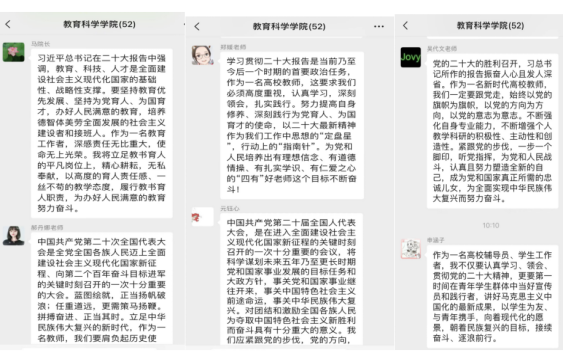习近平总书记在二十大报告中强调,教育、科技、人才是全面建设社会主义现代化国家的基础性、战略性支撑。要坚持教育优先发展、坚持为党育人、为国育才,办好人民满意的教育,培养德智体美劳全面发展的社会主义建设者和接班人。作为一名教育工作者,深感责任无比重大,使命无上光荣。我将立足教书育人的平凡岗位上,精心耕耘,无私奉献,以高度的育人责任感、一丝不苟的教学态度,履行教书育人职责,为办好人民满意的教育努力奋斗。