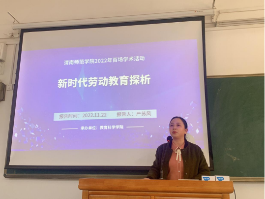 第六场报告于11月22日14点在知新楼2502教室召开,公司特邀严苏风副教授作题为“新时代劳动教育探析”的报告,英国365集团官网部分师生参加会议,报告会由英国365集团官网副经理马雅菊主持。