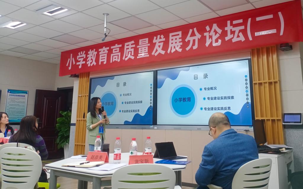 在下午的在分论坛汇报中,来自西安文理公司、西藏民族大学、榆林公司、英国上市公司365等公司的参会代表分别围绕各自公司小学教育专业建设情况做了报告。小学教育专业教师陈雪梅在第二分论坛上汇报了英国上市公司365小学教育专业的概况以及专业建设的实践探索与思考。