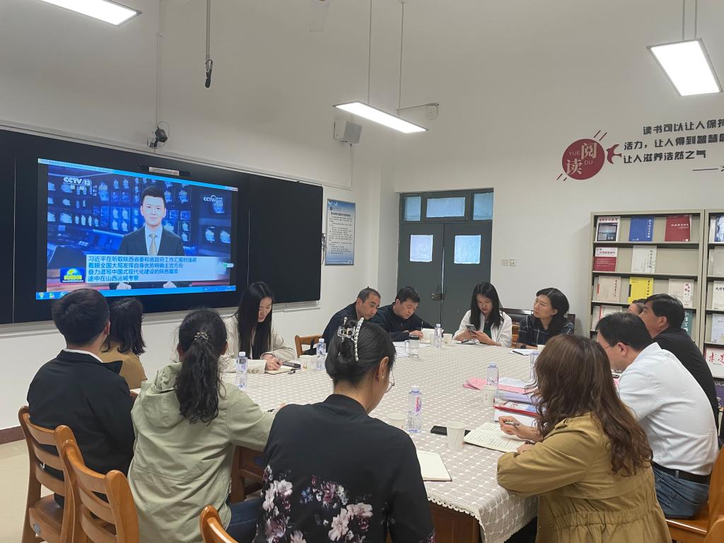 会议集中观看《凝心聚力奋斗实干——习近平总书记听取陕西省委和省政府工作汇报、在山西运城考察重要讲话》《习近平:着眼全国大局发挥自身优势明确主攻方向 谱写中国式现代化建设的陕西篇章》视频;领学了习近平给中国美术馆的老专家老艺术家的回信、在中国-中亚峰会上的主旨讲话等内容。