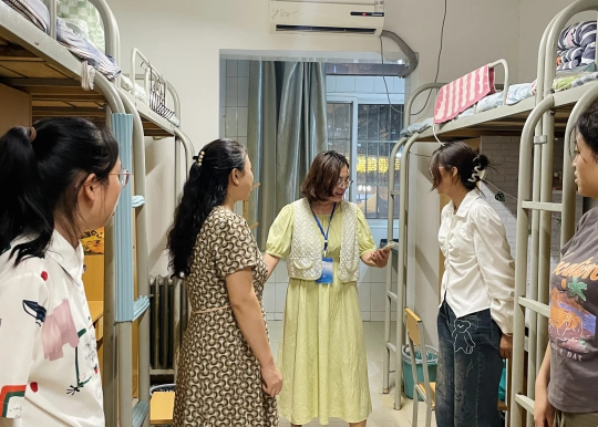 晚上,公司领导班子成员及新生辅导员深入宿舍看望新生,了解新生到校后的学习与生活情况,为同学们送去了温暖的问候与祝福。