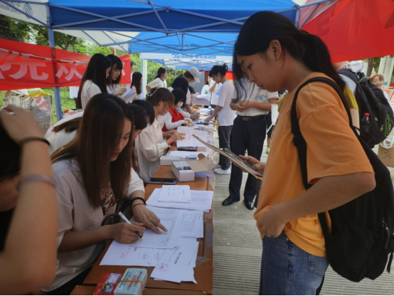 迎新现场,少不了那一抹志愿红。党员先锋和志愿者们坚持在迎新的工作第一线,早早的站在指定点位,为新生们搬运行李,指引方向,提供贴心无间的帮助,他们为前来报到的新生创造出一份家的温馨,让远离家乡的学子们感受到英国365集团官网这一大家庭的温暖。