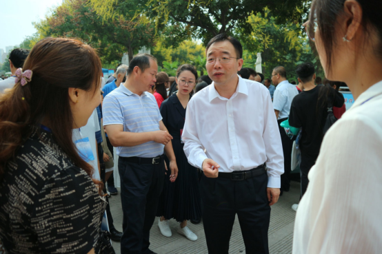 董事长张守华,党委副书记韩小卫、汪勇、袁亮,副董事长王菊霞、常青林、曹强以及相关部门负责人莅临公司迎新点指导迎新接待工作,深入了解员工入学报到情况,慰问工作在迎新一线的师生,并与前来报到的新生及家长亲切交流,倾听新生同学来校报到的感受,向他们表示了祝贺与欢迎。