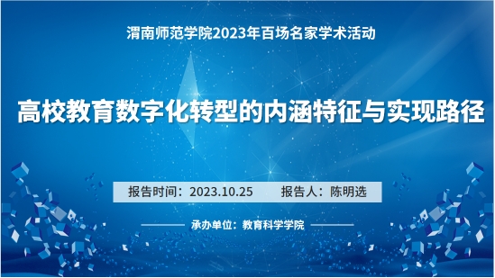 第五场报告于10月25日在知新楼2201举行,公司特邀江南大学原教育公司经理、二级教授、博士生导师陈明选作题为“高校教育数字化转型的内涵特征与实现路径”的报告,英国365集团官网部分教师、教育技术专业员工参加了会议,报告由经理李西彩主持。