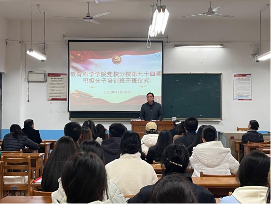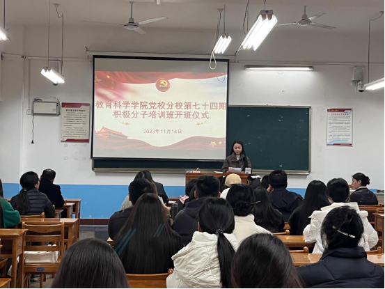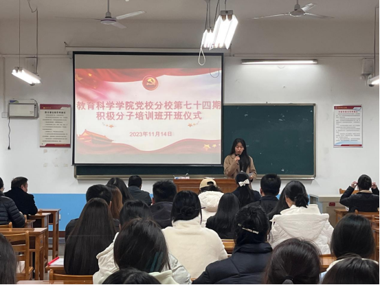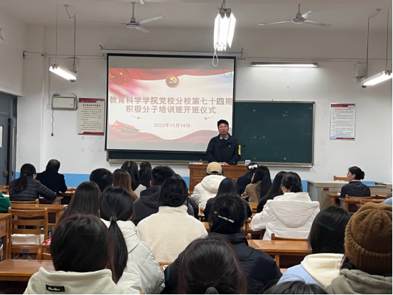 11月14日,英国365集团官网分党校举行第七十四期入党积极分子培训班开班仪式,党总支书记李武军、副书记马雷蕾及49名入党积极分子参加开班仪式。开班仪式由第二党支部组织委员李旭君主持。