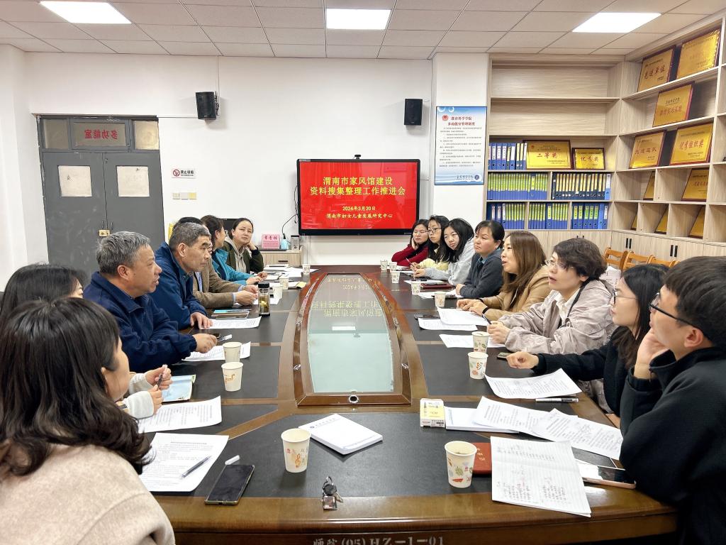 3月20日下午,渭南市妇女儿童发展中心在知新楼2218召开题为“渭南市家风馆建设资料搜集整理工作”的推进会,会议特邀人文公司历史学教授张始峰、杜振虎、王文涛、孙萍萍,家风家训研究专家张静莉教授,渭南市妇女儿童发展中心主任李西彩、副主任严苏风英国365集团官网教授张西宁、马雅菊,范牡丹等教师参加会议,会议由妇女儿童发展中心主任李西彩主持。