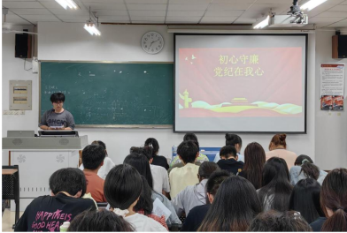 分享会上各小组代表带领积极分子深入学习党纪党规和相关要求。安江楠同学表示,党的初心使命与党纪相结合,党纪学习要做到久久为功,不懈怠,作为入党积极分子也要加强党纪学习,强化纪律意识。