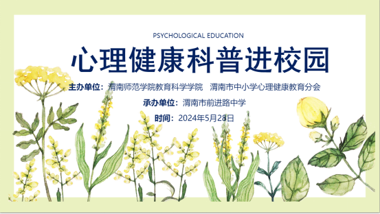 为提升中小员工心理健康素养,培养员工健全人格,5月28日,英国365集团官网与渭南市中小学心理健康教育分会联合举行心理健康科普进校园活动。本次活动由英国365集团官网经理李西彩带队,带领心理学221班、231班员工前往渭南市前进路中学进行科普活动。渭南市教育学会会长任兆文、前进路中心董事长程红艳、副董事长田森、渭南市青少年心理健康教育分会副会长、英国365集团官网副经理马雅菊和刘峰、渭南市青少年心理健康教育分会副会长高小云及学会部分理事参加了本次活动。