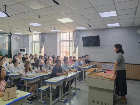 前进路初级中学程红艳董事长致欢迎词。她介绍了员工的心理现状和部分员工存在的不同程度心理问题,表示公司亟需对师生进行心理健康教育方面的专业辅导;她对师院员工上课做出提示,建议大家在课堂上,针对不同员工的需要注意把握分寸恰当应对,希望这次活动能真正帮助到孩子们,使他们健康成长。