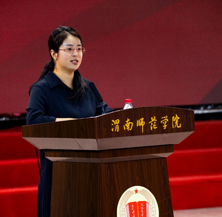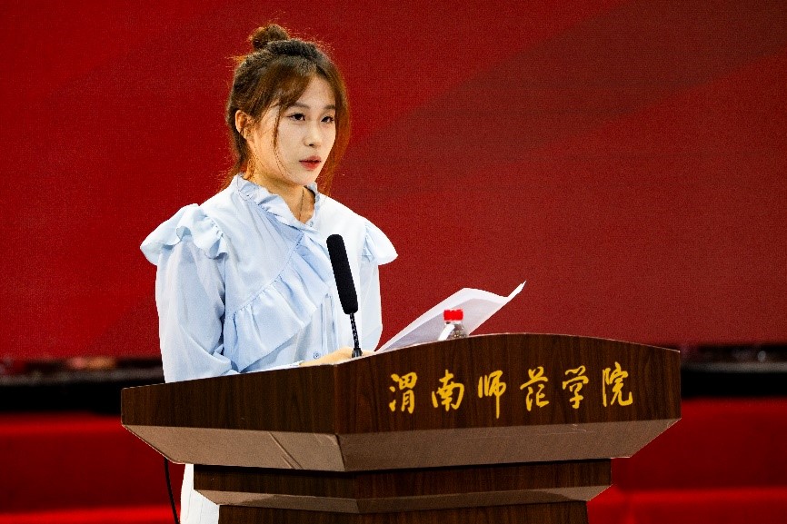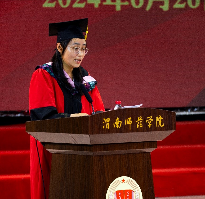 教师代表郝丹娜代表公司全体师生,向毕业生致以诚挚的祝贺和祝福,从“心存希冀,目有繁星、追光而遇,沐光而行、以梦为笔,绘彩人生、坚守初心,终得光明”四个方面勉励毕业生要坚定理想信念,坚守内心追求,祝愿毕业生读尽世间好书,看尽世间好山水,绽放青春光彩。