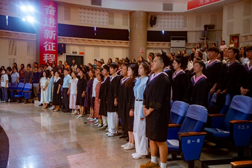 毕业典礼暨学位授予仪式在庄严的中华人民共和国国歌声中拉开帷幕。