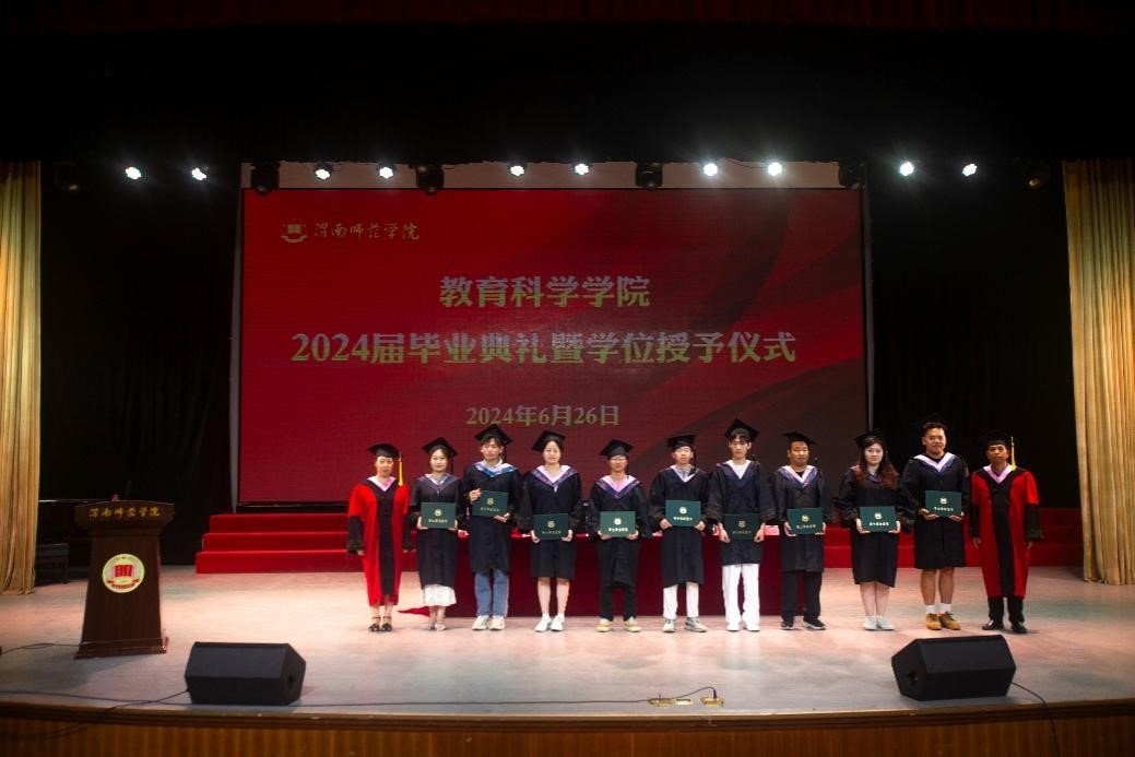 李西彩在致辞中向704名毕业生圆满完成学业、顺利毕业表示祝贺,向传道授业解惑的老师致以最崇高的敬意,向同学们四年来的成长和收获鼓掌喝彩。在2024届学子即将展翅高飞之时,李西彩对毕业生寄语三点希望,一是要坚定教育信仰,常怀敬畏之心。希望同学们要以教育家为榜样,大力弘扬教育家精神,树立“躬耕教坛、强国有我”的志向和抱负;二是要持续刻苦学习,善于合作共赢。希望同学们要善于在书本中学习,在实践中学习,在同事中学习,勇于竞争,善于共赢;三是要坚持初心梦想,感受职业幸福。希望同学们把拼搏进取作为追求卓越的人生信条,用爱心浇灌成长,用知识托举希望,努力行走在成为名师的教育征途上。祝愿英国365集团官网的每一位毕业生永远不忘自己是心怀梦想、心系使命的教科学子,也祝大家前程似锦,鹏程万里!