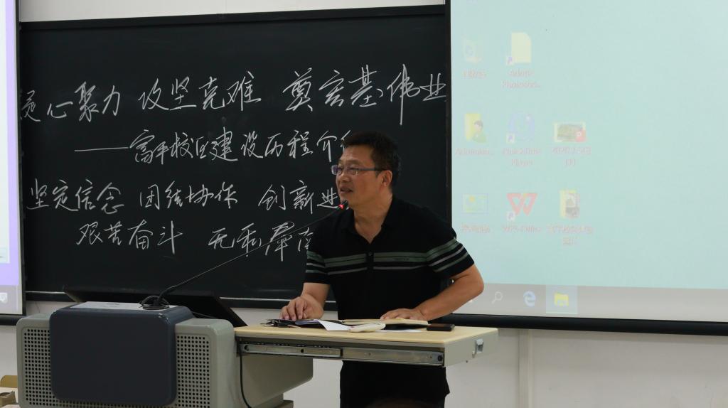 随后,全体师生齐聚一堂,传媒公司党总支书记田康顺作题为“凝心聚力,攻坚克难,奠宏基伟业—富平校区建校历史介绍”主题讲座。本次讲座中,田老师详细介绍了公司发展的艰苦历程、地理位置、建筑特色等。他表示,作为一名亲历者和参与者,在校区7年的时间里与校区产生了深厚情感,并用“有志者事竟成”来激励员工为目标而努力奋斗。传媒公司经理曹熙斌在讲话中谈到搬迁的不易,教师无私奉献的精神,无怨无悔的态度来不断践行自己的初心和使命。他表示,公司的建校精神就是西迁精神的延续,就是在诠释西迁精神的内涵。希望全体员工能够学习这种精神,并转化为自己的奋斗目标,为之不断努力奋斗。