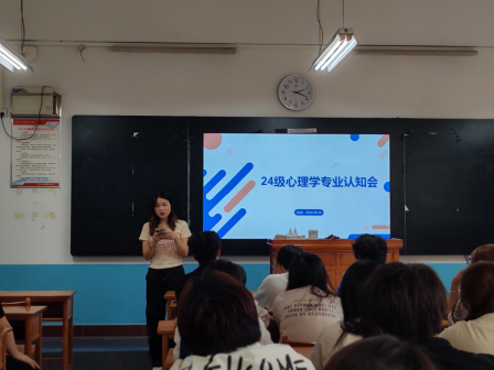 为提高新生对心理学专业的认知,9月26日下午两点,心理学专业在2208教室举办了2024级心理学专业认知会。副经理刘峰、心理学带头人蒙宗宏、心理学专业负责人孙悦、心理学专业教师李鑫、夏秀娟、新生辅导员韩皓宇及心理241班全体员工参与了本次会议。会议由孙悦老师主持。