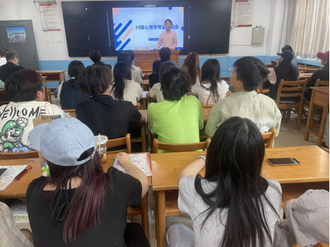 会议第一项,刘峰老师发言,刘峰老师介绍了心理学学科的性质,心理学是介于自然科学和社会科学之间的中间科学,建议同学们扩展知识面,尤其是加强计算机和英语的学习。
