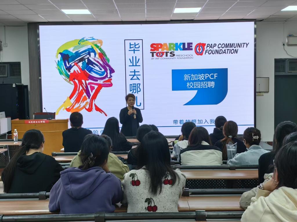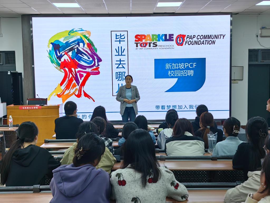 孙雯莉详细介绍了新加坡的基本国情、人文风情,以及幼儿华文教师项目概况、企业文化、工作岗位需求等,着重介绍了PCF的办学宗旨、管理方式、工作环境、待遇福利情况,同时展示了往届赴新加坡工作毕业生的工作以及生活现状,让员工们深入了解企业需求的同时,对赴新工作有了更为直观的感受,帮助毕业生理清自身职业规划和就业方向。