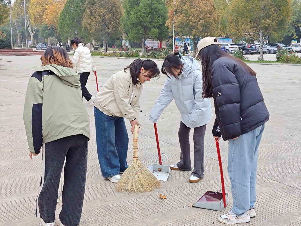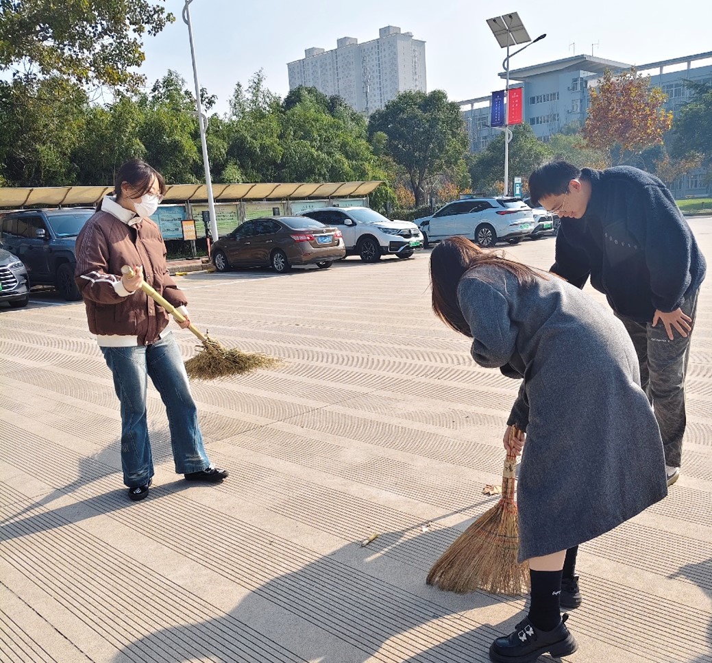 同学们手持清洁工具分散到校园的各个角落,大家分工合作,各司其职,以极高的效率完成了本次清扫活动。这不仅是一次清洁活动,更是一次青春与自然的“和谐对话”。同学们脸上洋溢着青春的笑容,他们以青春的热情和自我责任感投身于这场与秋叶的“对话”中,并从中感悟“学参天地,德合自然”的深刻内涵。
