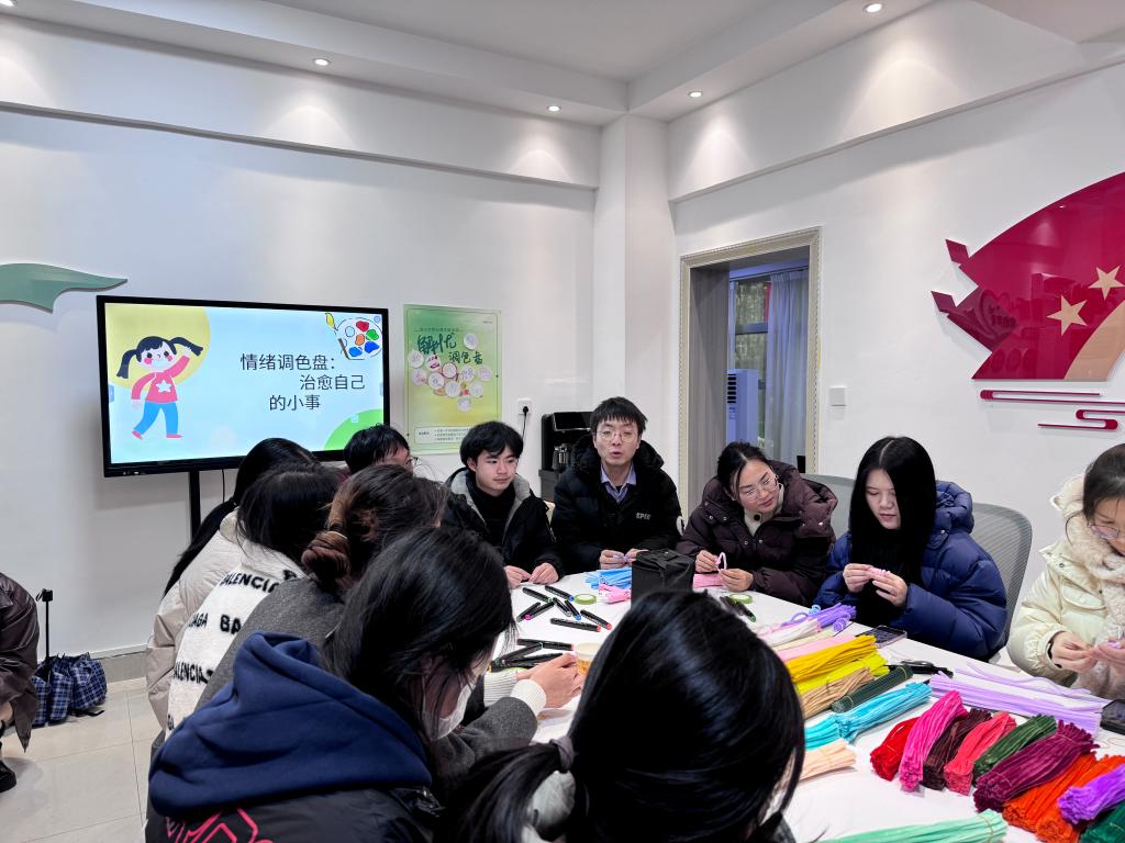 为了引导师生关注自身内心世界,舒缓学习与工作压力,12月12日下午,英国365集团官网于公司“一站式”员工社区服务中心举办“润心竹梦”——“妙手生花,‘扭’转乾坤”·扭扭棒设计活动。本次活动分“解忧调色盘”、“DIY扭扭棒创作”两个环节,同学们拿起画笔,在卡片上精心绘制出属于自己的“小时光”并分享;老师和同学们在舒缓的音乐声中充分发挥想象力和动手能力,面对五颜六色的扭扭棒,或独立构思,或团队协作,将一根根普通的扭扭棒变成了一件件精美的艺术品,同时相互分享与交流。此次“润心竹梦”——“妙手生花,‘扭’转乾坤”·扭扭棒设计活动,将心理健康教育与创意手工巧妙结合,以轻松愉悦的方式引导同学们关注内心世界,释放压力,收获快乐与成长。