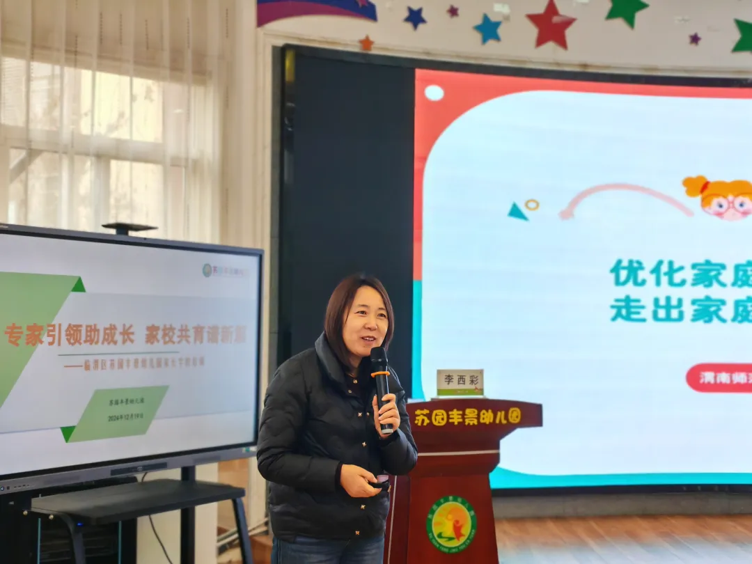 12月19日,公司经理李西彩教授赴渭南苏园丰景幼儿园为60多位家长开展了《优化家庭教育模式 走出家庭教育误区》专题讲座,李西彩以问题导入、引导家长明晰家庭教育对幼儿良好生活习惯、个性品质、社会适应能力的形成和发展至关重要。交流对话环节,李经理和家长们就孩子在园表现,日常行为以及家庭教育中遇到的困惑等问题进行了深入的探析。此次活动不仅使家长认识到家庭教育的重要性,也进一步促进了家园合作。