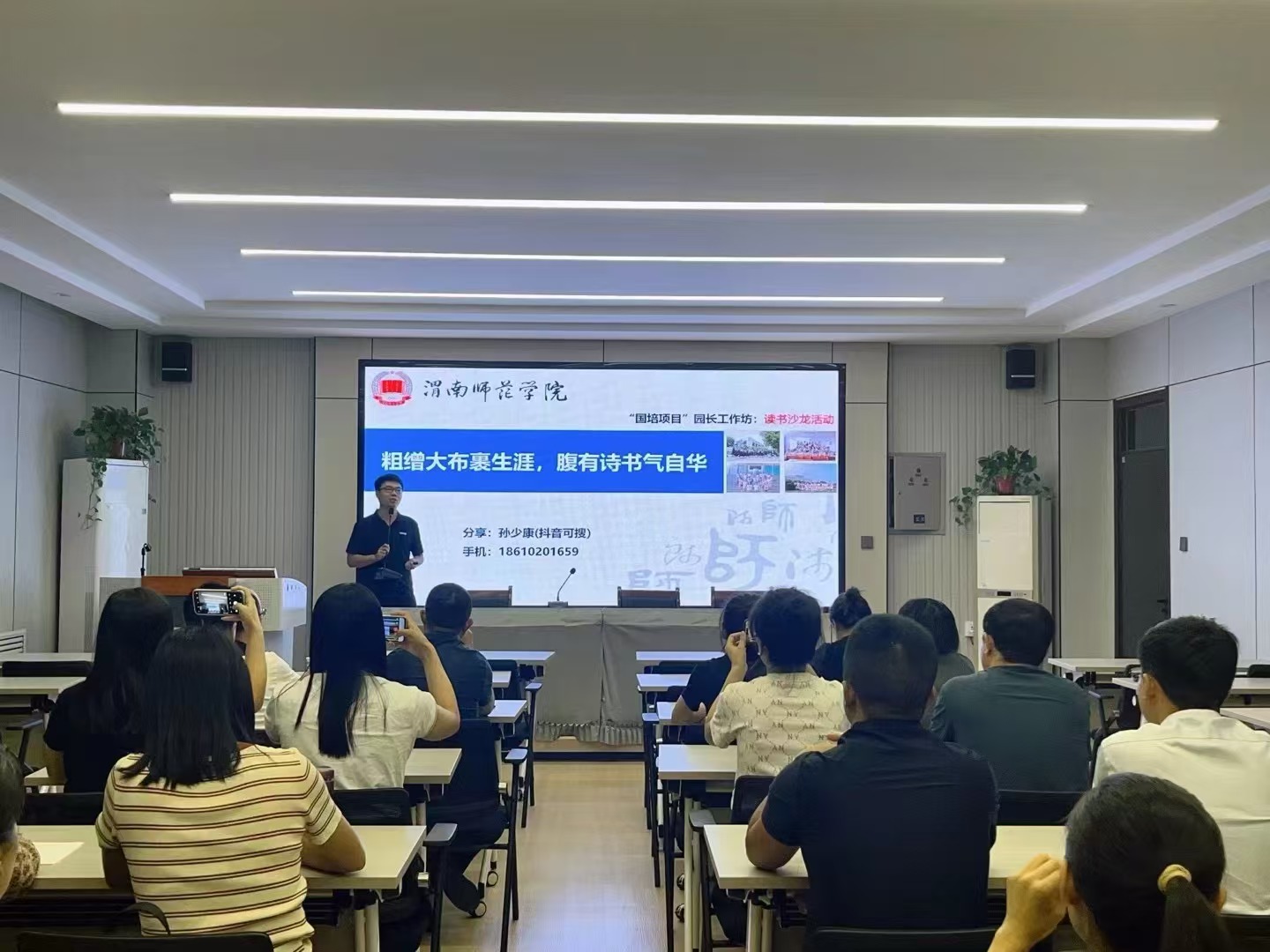 他自豪地说:“很高兴和激动能回到我的母校任教,这里是我曾经梦想起航的地方,也是我新生活新事业的起点。生逢盛世,肩负责任,潜心耕耘,静待花开。祝我的员工们能够做一个有品德、有思想的人,但行好事,莫问前程,日拱一卒,功不唐捐,乘风破浪会有时,直挂云帆济沧海!也希望接下来自己在渭师院的日子里能够过得快乐且有意义。好多事等着我去做,好多路等着我去走。”