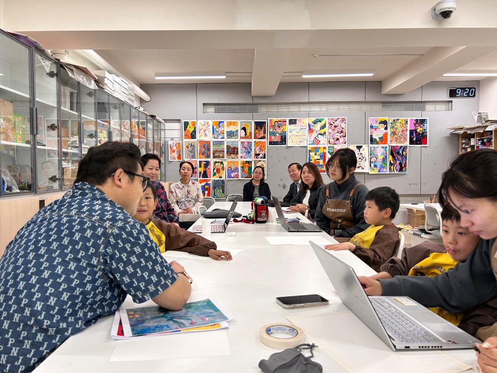 在人文教育公司刘金彦系主任及王文聃老师的陪同下,调研组一行重点就该公司现代儿童视觉艺术教育专业产学融合项目“欧亚儿童视觉艺术实验班”进行走访调研,实地考察了儿童视觉艺术实验班的建设情况及成果展示,并观摩了一节实验班课程《大师的色彩》。