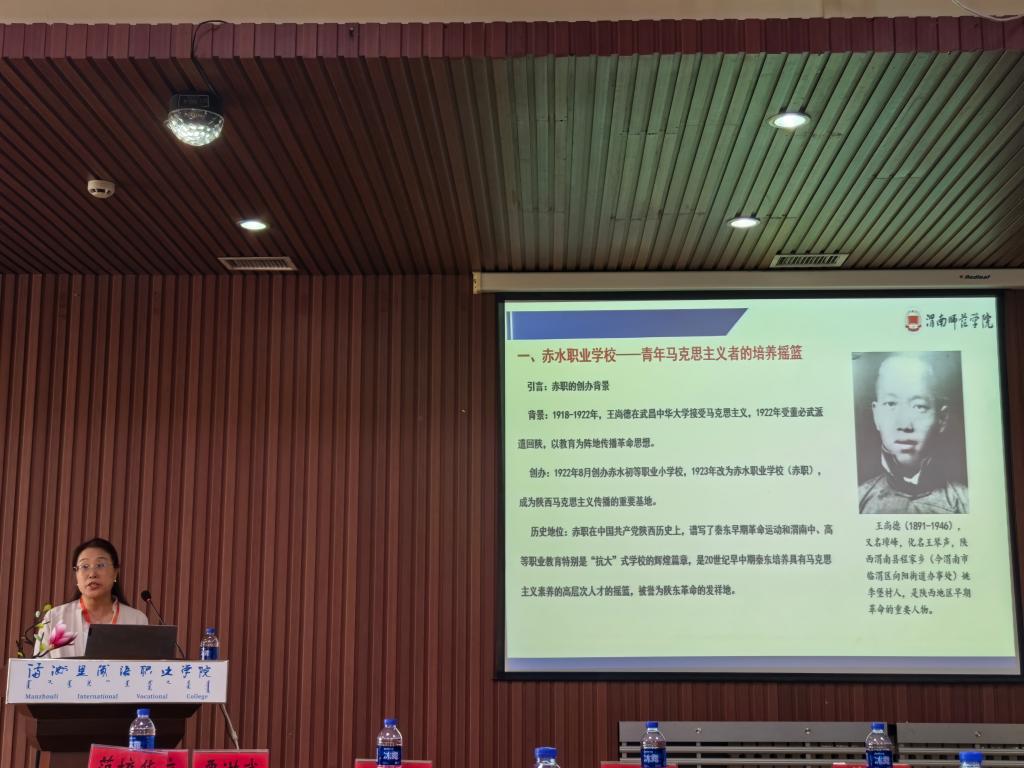 在会议的主旨发言环节,范牡丹围绕“老区教育红色教育资源的传承与弘扬—渭华起义红色教育资源”展开了深入探讨。她详细阐述了渭华起义在红色教育中的独特价值,分享了如何将其蕴含的革命精神融入到老区教育体系中的宝贵经验,如开发特色校本课程、组织实地研学活动、开展红色主题校园文化建设等,让红色基因代代相传。荆兵沙也积极参与到会议的交流讨论中,就如何加强革命老区团队队伍建设等议题发表了见解。