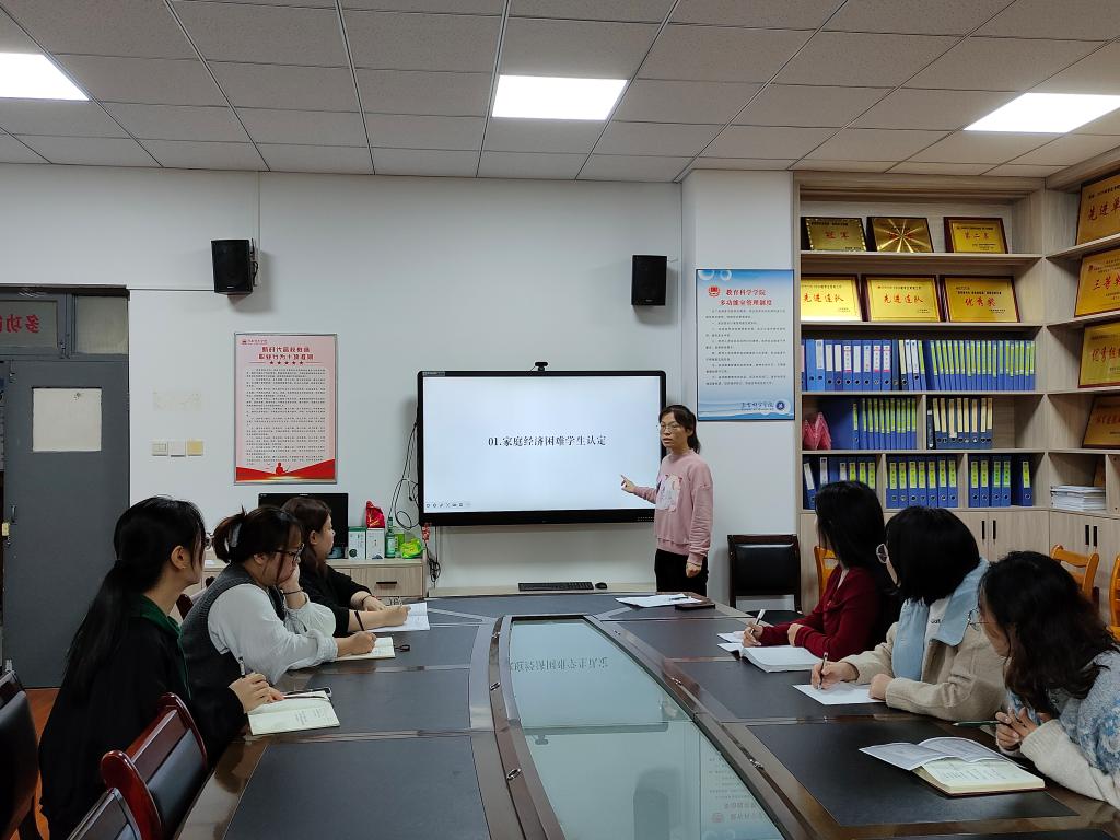 会上,李旭君围绕“奖、助、贷、勤、补、免”六大资助体系展开,详细解读了家庭经济困难员工认定、国家奖学金、国家励志奖学金、国家助学金、服兵役国家教育资助等多种资助项目的申请条件、评审流程和注意事项。讲解结合具体工作案例,尤其针对申请表填写规范、关键信息核对等常见问题进行了重点强调,以帮助辅导员们在后续审核中精准把控细节。