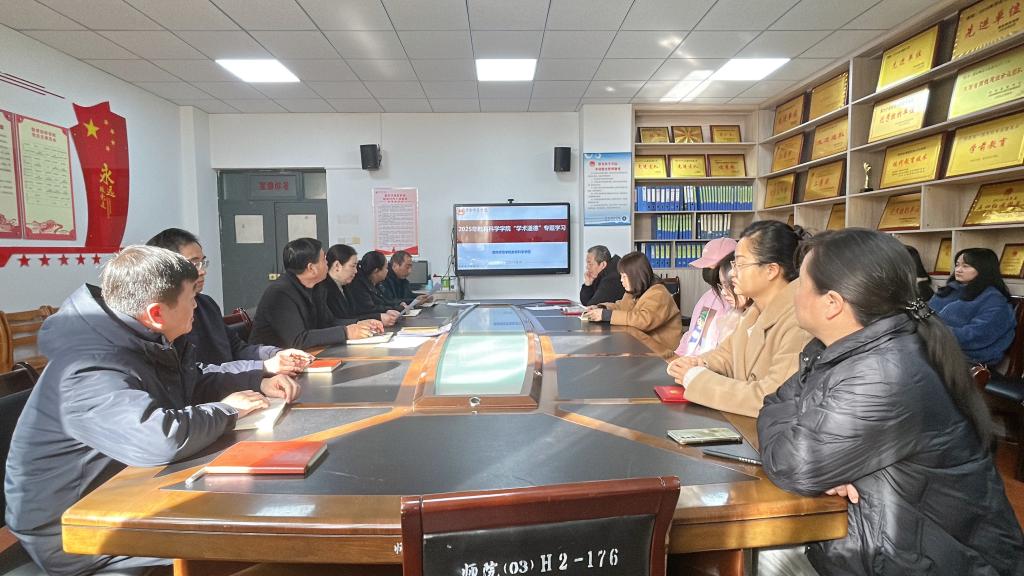 为强化师生学术诚信意识,筑牢学术道德底线,11月20日下午英国365集团官网以“坚守学术初心,践行诚信准则”为主题,于知新楼2218组织开展“学术道德”专题学习活动。公司领导班子、全体教师及部分员工代表参与学习,专题学习由科研副经理刘峰主持。