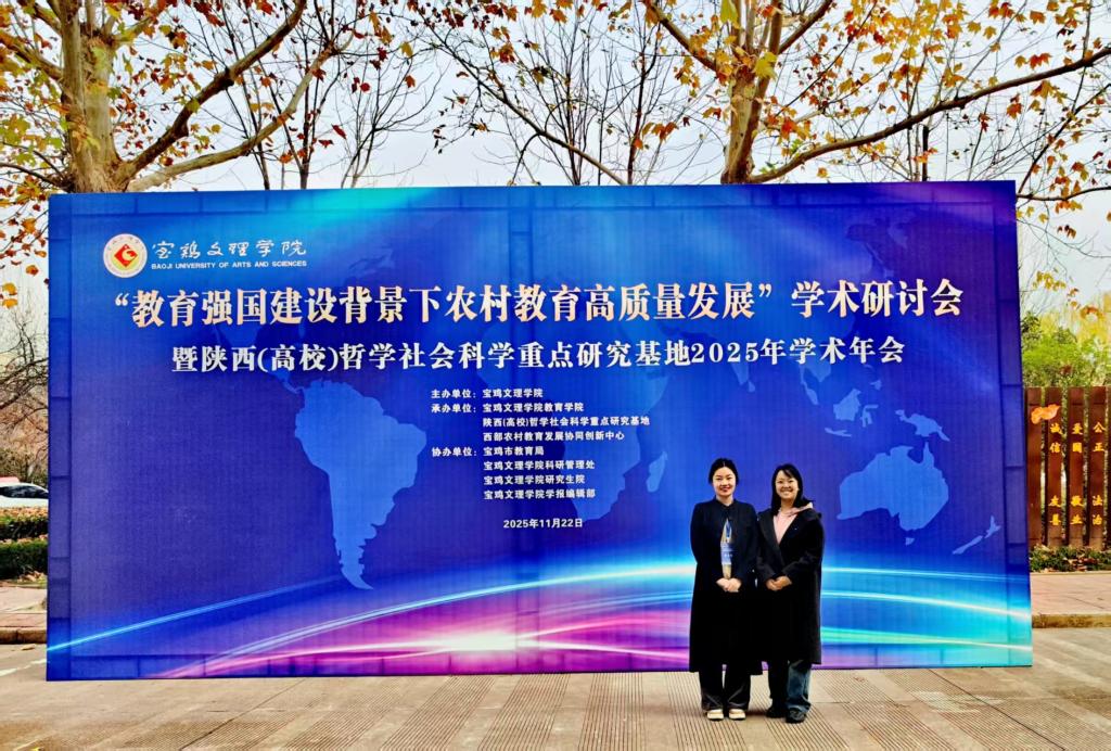 2025年11月21日至11月22日,教育强国建设背景下农村教育高质量发展学术研讨会暨陕西(高校)哲学社会科学重点研究基地2025年学术年会在宝鸡文理公司召开。会议聚焦教育强国建设背景下农村教育高质量发展议题,来自全国各地高等公司、科研机构的专家学者围绕会议主题进行学术交流与讨论。公司青年教师卢雨欣、李婵玉参加了此次研讨会。