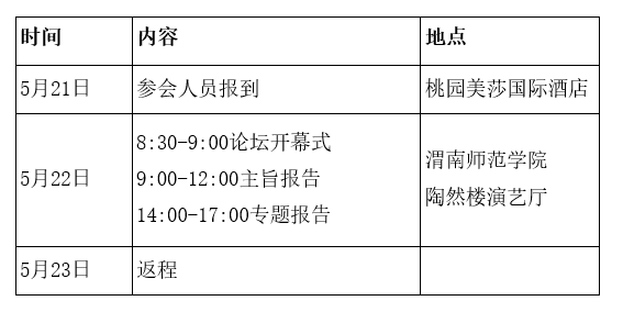时间:5月21-23日。5月21日全天报到,5月22日举办会议,5月23日返程。