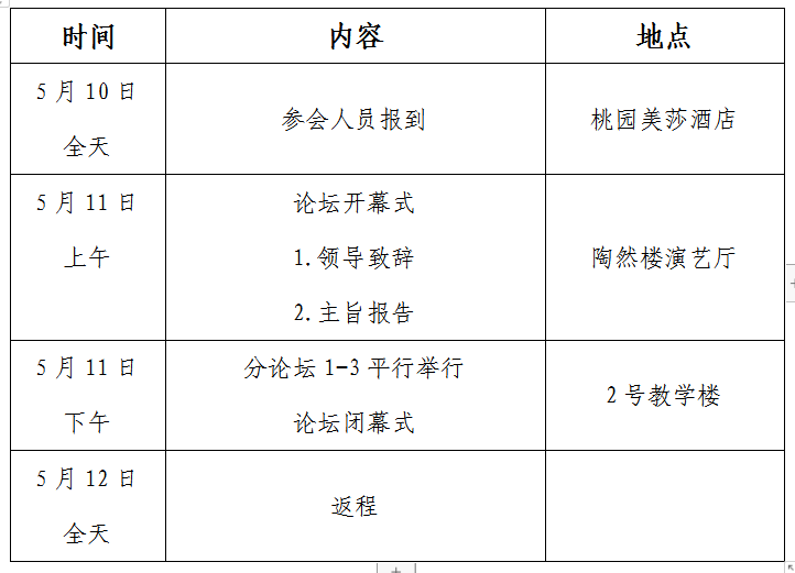 时间:5月10-12日。5月10日全天报到,5月11日举办会议,5月12日返程。