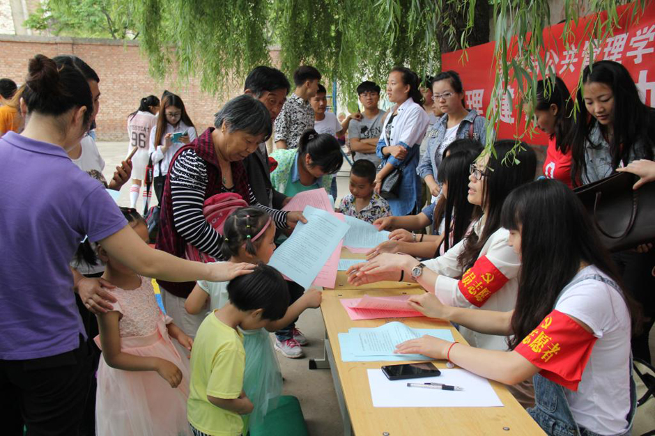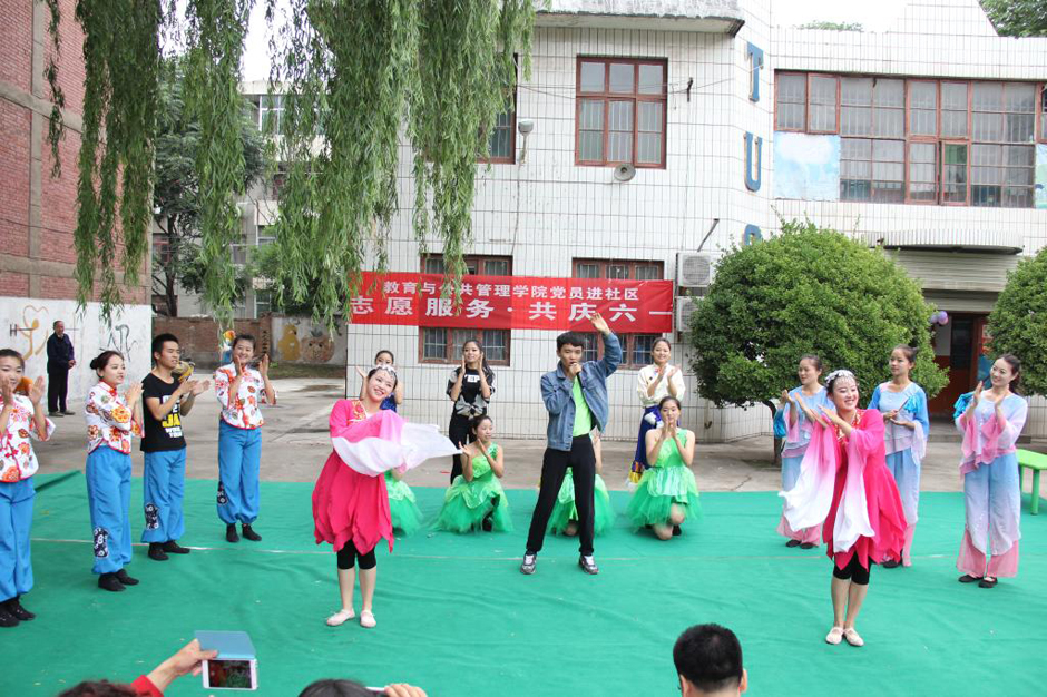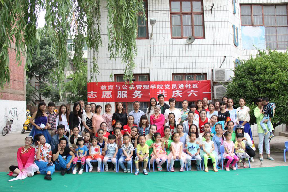 为了积极开展“三严三实”专题教育工作,全面推进党员进社区志愿服务活动,有效发挥党员参与社区建设、服务社区群众,与群众结对共建美丽社区的先锋模范作用,六一前夕,教育与公共管理公司的50余名师生党员走进公司汉马社区开展了“党员进社区红袖章志愿服务·共庆六一”活动。师生党员们为幼儿园的小朋友们带去了精心准备的文艺节目,送上了大家亲手制做的手工艺品,以文艺联欢和赠送礼物的方式向幼儿园的小朋友们表达了节日的祝福和慰问,同时,师生党员们还在幼儿和家长中开展了心理健康、幼儿教育咨询活动,向家长发放心理健康、幼儿教育宣传资料100余份,热情解答了家长咨询的有关问题。