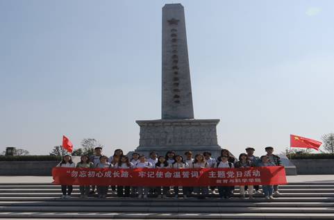 随后,驱车到达富平县120誓师遗址,参观八路军一二零师抗日誓师纪念碑,并在陈列室进行了参观学习,在抗日阵亡烈士纪念碑前,董建稳老师讲述了1937年各方面军在此会师整编时的历史故事,使师生党员真切体会到了以红军第二方面军为主的八路军120师出征誓师的昂扬斗志和爱国热情。